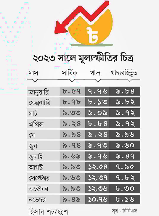 বছরজুড়েই বাজারে গিয়ে নিত৵পণ্যের দাম নিয়ে হিমশিম খেতে হয়েছে সাধারণ মানুষকে। প্রায় প্রতিটি পণ্যের দামই কমবেশি বেড়েছে। বাজার খরচ বেড়ে যাওয়ায় তাই নিম্ন ও মধ্যম আয়ের মানুষের জীবনে নাভিশ্বাস উঠেছে। টানা ৯ মাস ধরে মূল্যস্ফীতি ছিল ৯ শতাংশের ওপরে।