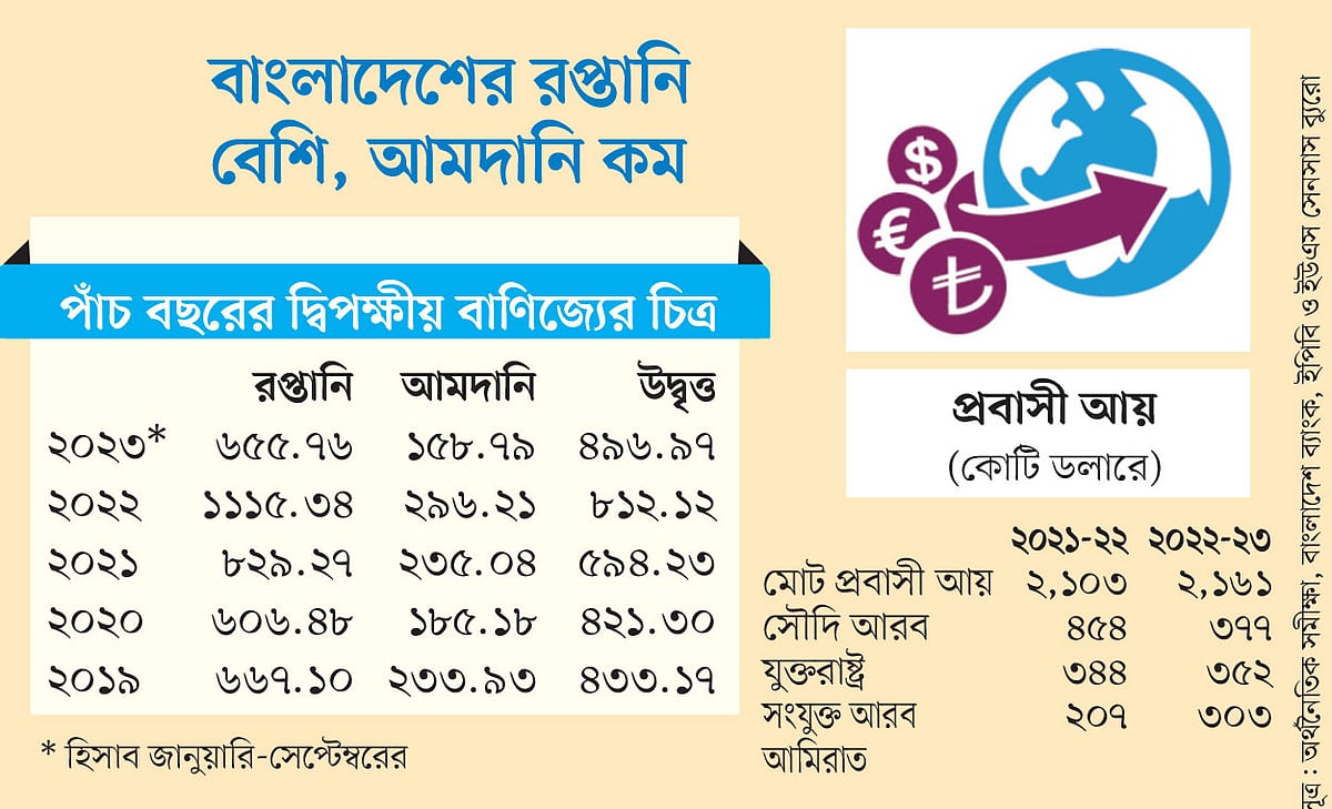 রপ্তানি আয়ের তুলনায় আমদানির এই চিত্র বলছে, দ্বিপক্ষীয় বাণিজ্যের ভারসাম্য বাংলাদেশের পক্ষে। যুক্তরাষ্ট্রের সঙ্গে দ্বিপক্ষীয় বাণিজ্যে এটি একটি গুরুত্বপূর্ণ দিক বলে মনে করেন বিশ্লেষকেরা।