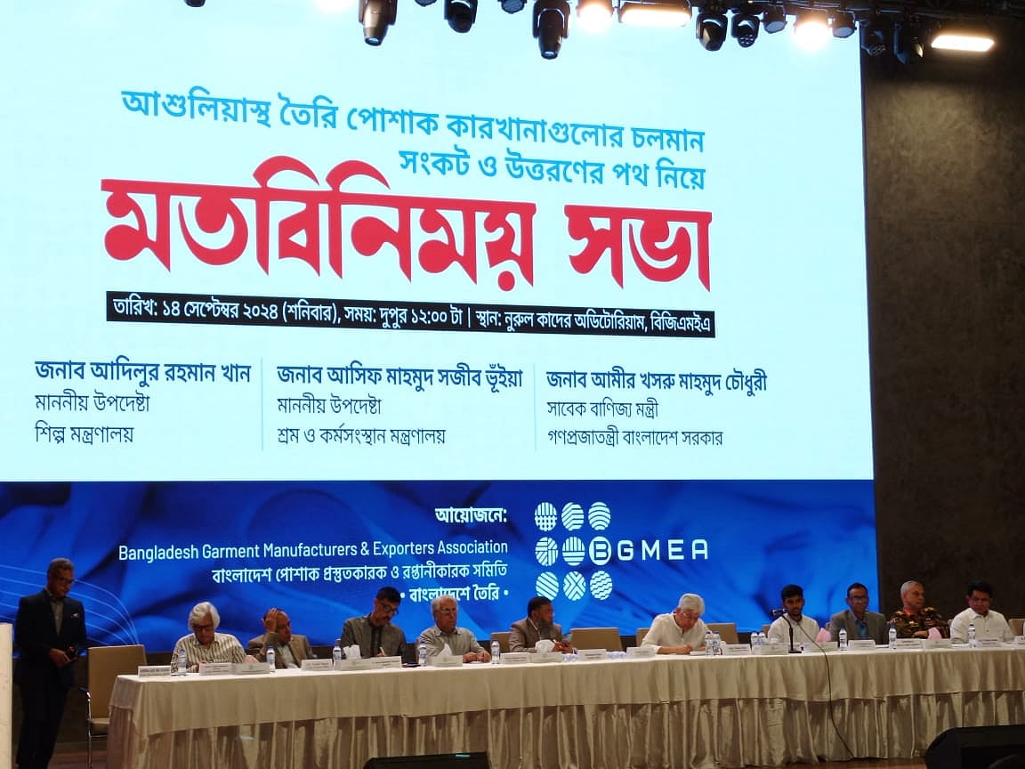 আজ শনিবার তৈরি পোশাক খাতে চলমান সংকট ও উত্তরণের পথ নিয়ে আয়োজিত এক মতবিনিময় সভায় এ সিদ্ধান্ত নেওয়া হয়। রাজধানীর উত্তরায় অবস্থিত বিজিএমইএ কার্যালয়ে তৈরি পোশাক কারখানার মালিক, শ্রমিকনেতা, সরকারের তিন উপদেষ্টা ও আইনশৃঙ্খলা রক্ষাকারী বাহিনীর সদস্যরা উপস্থিত ছিলেন।