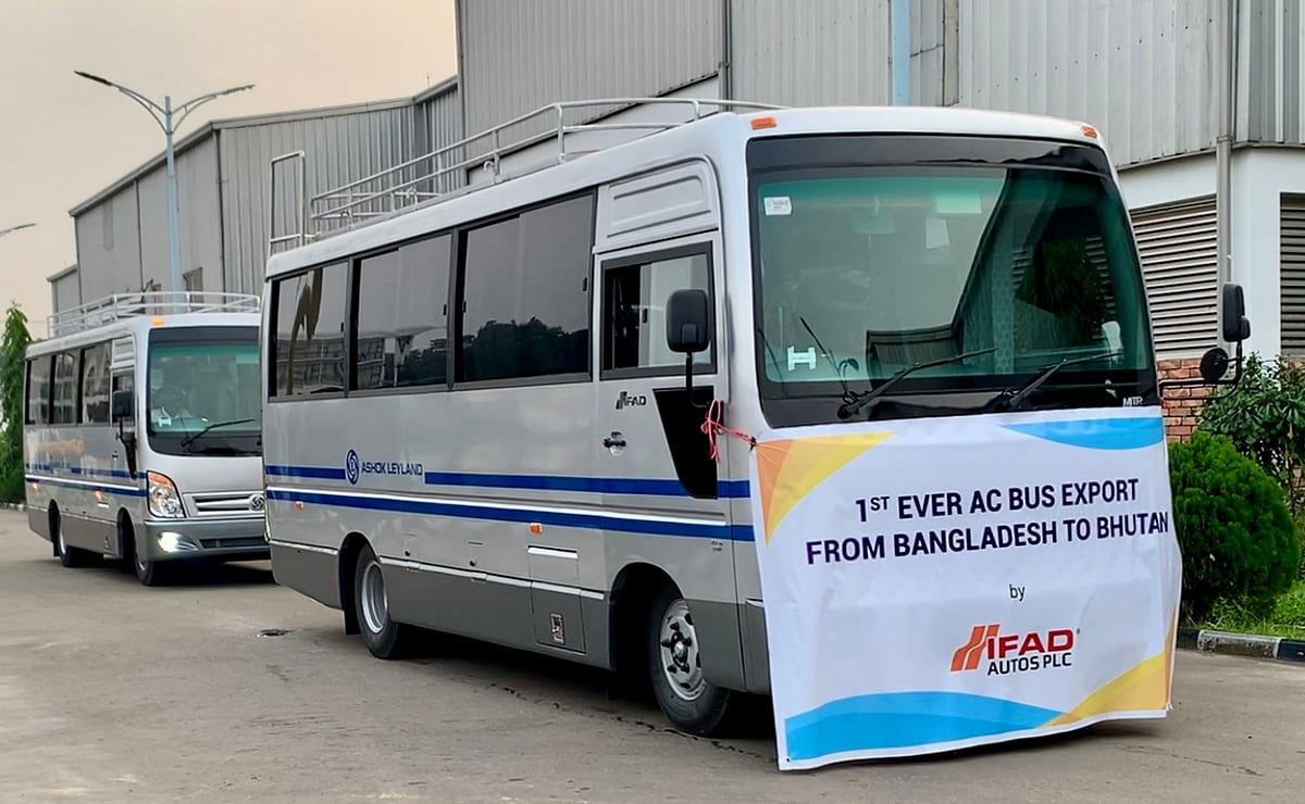আজ শনিবার এক সংবাদ বিজ্ঞপ্তিতে ইফাদ অটোস জানিয়েছে, প্রথম চালানে ১১টি শীতাতপনিয়ন্ত্রিত (এসি) বাস ভুটানে রপ্তানি করা হয়েছে। কোম্পানির নিজস্ব কারখানায় এসব বাসের বডি বা মূল কাঠামো প্রস্তুত করা হয়।