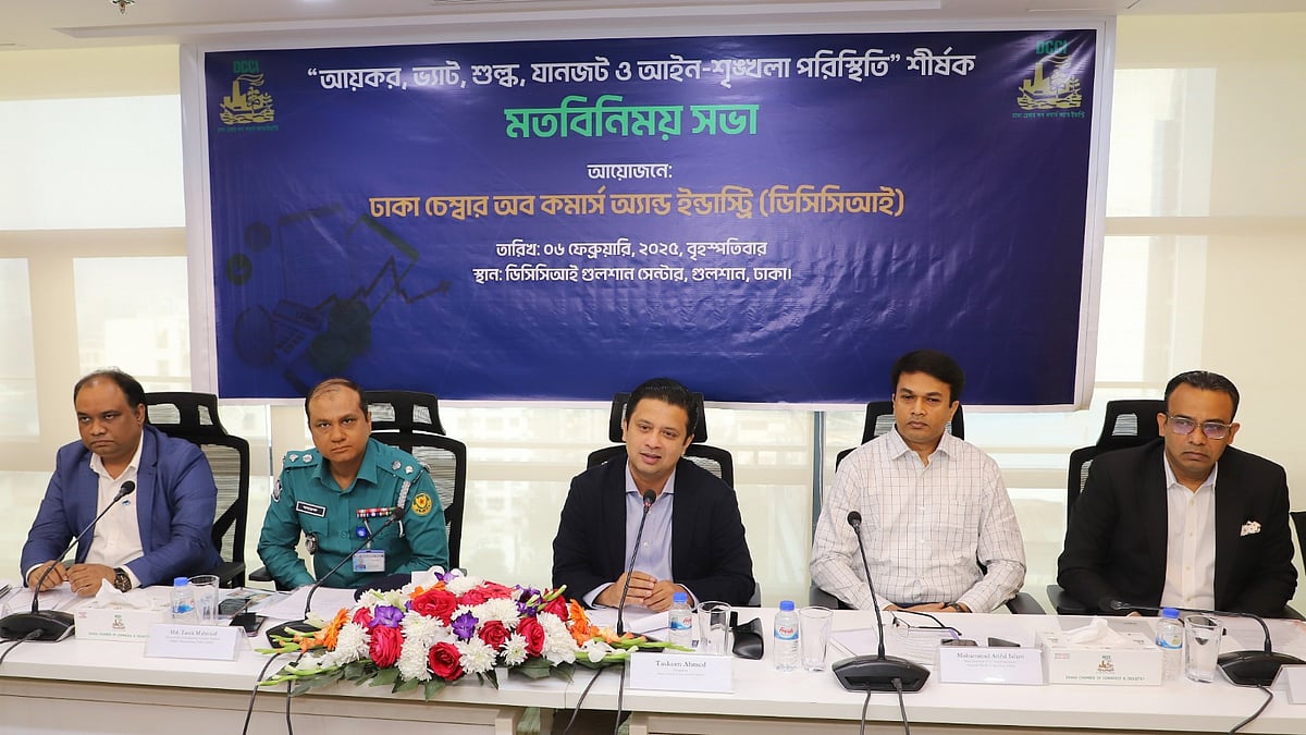রাজধানীর তৃণমূল পর্যায়ের ব্যবসায়ীদের সমস্যা চিহ্নিতকরণের পাশাপাশি করণীয় নির্ধারণের লক্ষ্যে ঢাকা চেম্বারের আয়োজিত ‘আয়কর, ভ্যাট, শুল্ক, যানজট ও আইনশৃঙ্খলা পরিস্থিতি’ শীর্ষক মত বিনিময় সভায় এ কথা বলেন ঢাকা চেম্বারের সভাপতি তাসকীন আহমেদ। ডিসিসিআইর গুলশান সেন্টারে আজ বৃহস্পতিবার অনুষ্ঠিত এ সভায় গুলশান, মহাখালী, বনানী ও বাড্ডা এলাকার ১৪টি বাণিজ্য সংগঠনের নেতাদের পাশাপাশি বেশ কিছু ব্যবসাপ্রতিষ্ঠানের প্রতিনিধিরাও অংশ নেন।