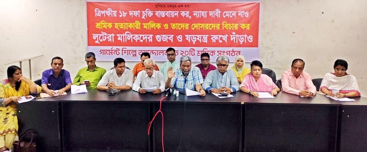লিখিত বক্তব্যে বলা হয়, গত ৫ আগস্টের রাজনৈতিক পটপরিবর্তনের পর পোশাকশিল্পের কিছু মালিক আগের মতো দমন-পীড়ন চালিয়ে যাচ্ছেন। এই পরিপ্রেক্ষিতে দীর্ঘদিন অবাধ ট্রেড ইউনিয়নসহ আইনানুগ সুযোগ-সুবিধা ও অধিকারবঞ্চিত শ্রমিকেরা বিভিন্ন কারখানায় দাবিনামা উত্থাপন ও আন্দোলন করতে বাধ্য হন। এই পরিপ্রেক্ষিতে গত ২৪ সেপ্টেম্বর শ্রম ও কর্মসংস্থান মন্ত্রণালয়ে অনুষ্ঠিত ত্রিপক্ষীয় সভায় ১৮ দফা চুক্তি সই হয়।