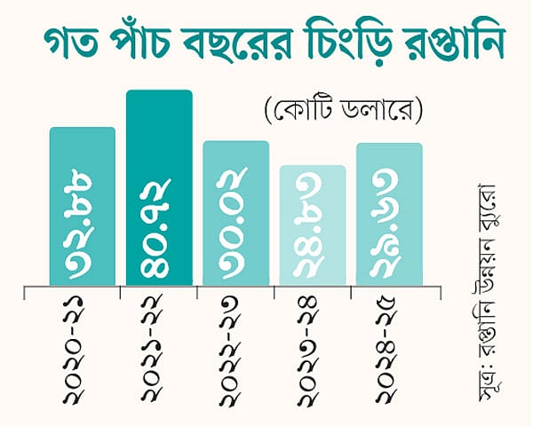 রপ্তানিকারকেরা আরও বলছেন, ক্রয়াদেশ ভালো থাকলেও চাহিদা অনুযায়ী কাঁচামাল বা চিংড়ি মিলছে না। দেশে অল্প পরিমাণে ভেনামি চিংড়ির চাষ শুরু হলেও তা রপ্তানি হচ্ছে না। ফলে রপ্তানি ভবিষ্যতে কতটা টেকসই হবে, সেটি বলা যাচ্ছে না।