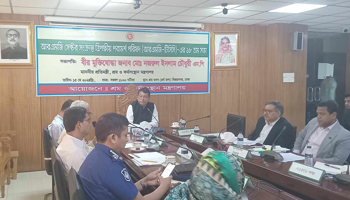 শ্রম ও কর্মসংস্থান প্রতিমন্ত্রী মো. নজরুল ইসলাম চৌধুরীর সভাপতিত্বে ত্রিপক্ষীয় পরামর্শ পরিষদের (আরএমজি-টিসিসি) ১৮তম সভায় এ সিদ্ধান্ত নেওয়া হয়েছে। রাজধানীর শ্রম ভবনে আজ বুধবার সভাটি অনুষ্ঠিত হয়। শ্রম ও কর্মসংস্থান মন্ত্রণালয়ের পাঠানো এক সংবাদ বিজ্ঞপ্তিতে বিষয়টি জানানো হয়।