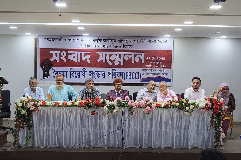 আজ বৃহস্পতিবার ঢাকায় জাতীয় প্রেসক্লাবের জহুর হোসেন চৌধুরী হলে নতুন বিধিমালাকে স্বাগত জানিয়ে সংবাদ সম্মেলন করেছে ব্যবসায়িক সংগঠনে বৈষম্যবিরোধী সংস্কার পরিষদ (এফবিসিসিআই)। সংবাদ সম্মেলন সঞ্চালনা করেন সংগঠনটির সদস্যসচিব মো. জাকির হোসেন। মূল বক্তব্য উপস্থাপন করেন সংগঠনটির আহ্বায়ক জাকির হোসেন নয়ন।