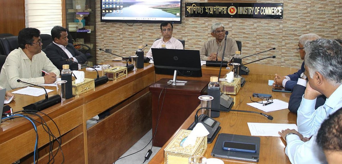 রাজধানীর সচিবালয়ে আজ বৃহস্পতিবার বিকেলে বাণিজ্য মন্ত্রণালয়ের সম্মেলনকক্ষে অনুষ্ঠিত এক বিশেষ পর্যালোচনা সভায় এ কথা বলেন বাণিজ্য উপদেষ্টা সালেহউদ্দিন আহমেদ। সভায় উপস্থিত ছিলেন বাণিজ্যসচিব মোহাং সেলিম উদ্দিন, স্কয়ার গ্রুপের ব্যবস্থাপনা পরিচালক তপন চৌধুরী, ইনসেপ্টা ফার্মাসিউটিক্যালসের চেয়ারম্যান আব্দুল মোক্তাদির, অ্যাপেক্স গ্রুপের ব্যবস্থাপনা পরিচালক সৈয়দ নাসিম মঞ্জুর, প্রাণ গ্রুপের পরিচালক উজমা চৌধুরী প্রমুখ। মন্ত্রণালয়ের পাঠানো সংবাদ বিজ্ঞপ্তিতে বিষয়টি জানানো হয়।