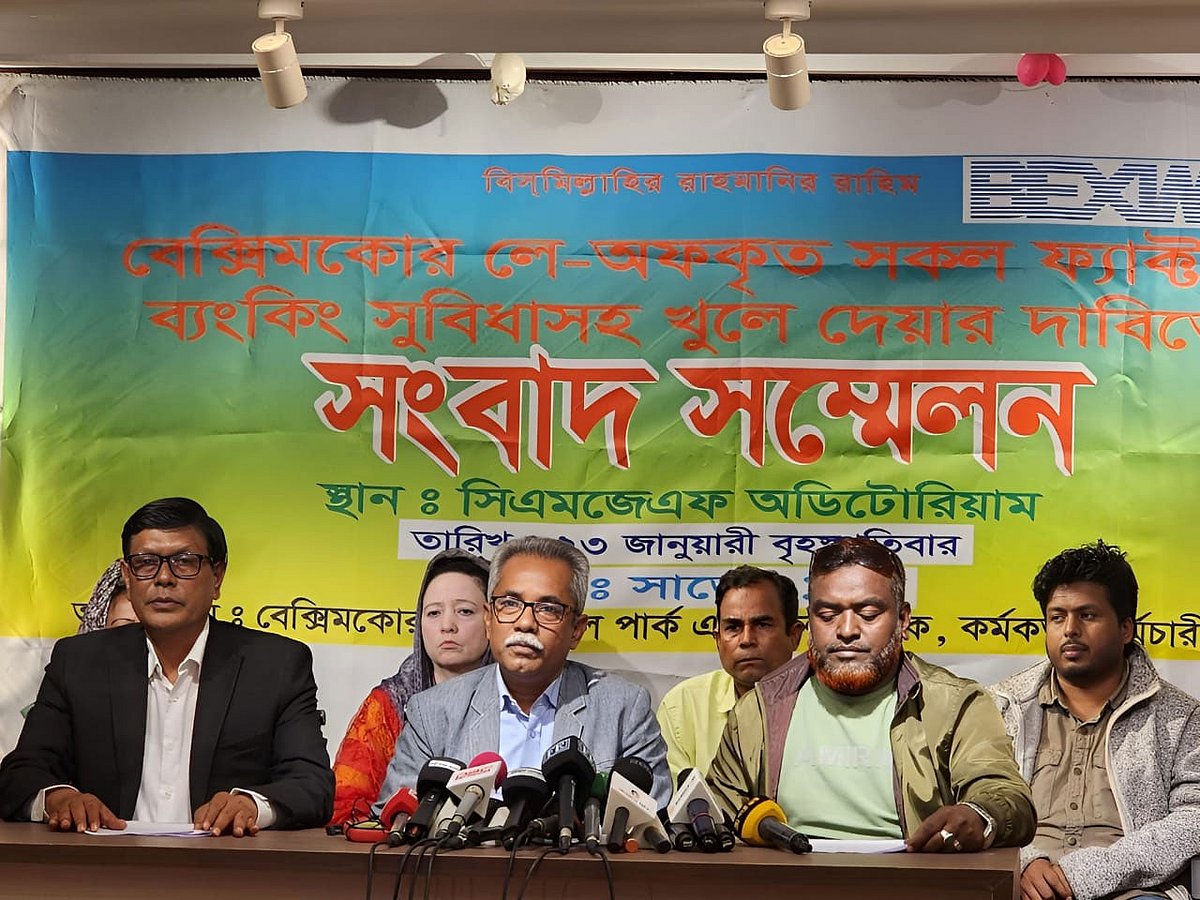 আজ বৃহস্পতিবার ঢাকার পল্টনে ক্যাপিটাল মার্কেট জার্নালিস্টস ফোরাম কার্যালয়ে অনুষ্ঠিত ‘বেক্সিমকোর লে-অফকৃত সব কারখানার ব্যাংকিং সুবিধাসহ কারখানা খুলে দেওয়া’ শীর্ষক এক সংবাদ সম্মেলনে এমন দাবির কথা তুলে ধরা হয়। বেক্সিমকোর শ্রমিক-কর্মচারী-কর্মকর্তারা এ সংবাদ সম্মেলনের আয়োজন করেন। এতে বক্তব্য দেন বেক্সিমকো ফ্যাশন লিমিটেডের প্রশাসন বিভাগের প্রধান সৈয়দ মো. এনাম উল্লাহ ও বেক্সিমকো ইন্ডাস্ট্রিয়াল পার্কের প্রশাসন বিভাগের প্রধান আবদুল কাইয়ুম। এ সময় বেক্সিমকো গ্রুপের কর্মকর্তা-কর্মচারীদের পাশাপাশি সরকারি বিভিন্ন সংস্থার সদস্যরাও উপস্থিত ছিলেন।