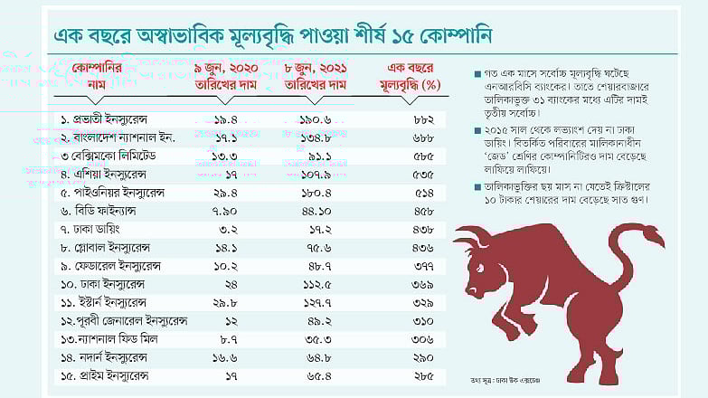 গত এক বছরে শেয়ারবাজারে অস্বাভাবিক মূল্য বৃদ্ধি পাওয়া কোম্পানিগুলোর সিংহভাগই ছিল বিমা খাতের।