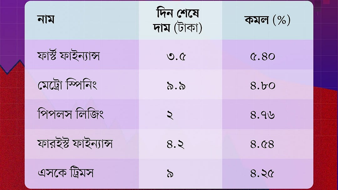 আজ বুধবার শেয়ারবাজারের লেনদেন শেষ হয়েছে। দিন শেষে মোট ৩২৭ কোটি ৮৩ লাখ টাকার শেয়ারের লেনদেন হয়েছে। এখন দেখা যাক, ঢাকা স্টক এক্সচেঞ্জে (ডিএসই) কোন পাঁচটি কোম্পানির শেয়ারের দাম আজ সবচেয়ে বেশি কমেছে।