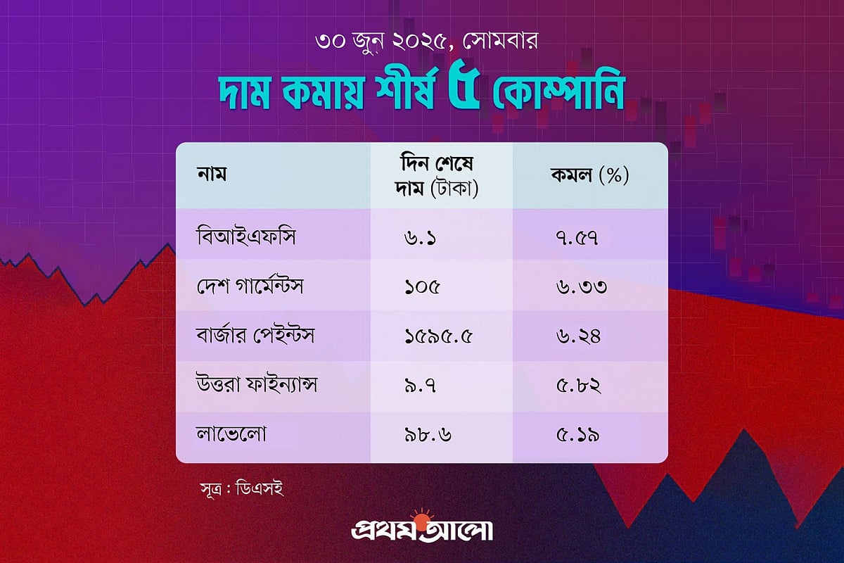 যে পাঁচ কোম্পানির শেয়ারের দাম সবচেয়ে বেশি কমল