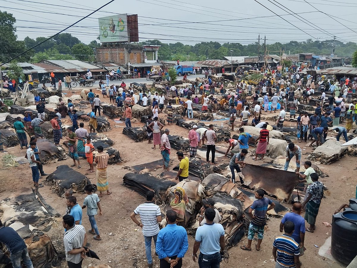ফলে আশপাশের সড়কে চামড়া নিয়ে বসতে হয়েছে অনেক ব্যবসায়ীকে।