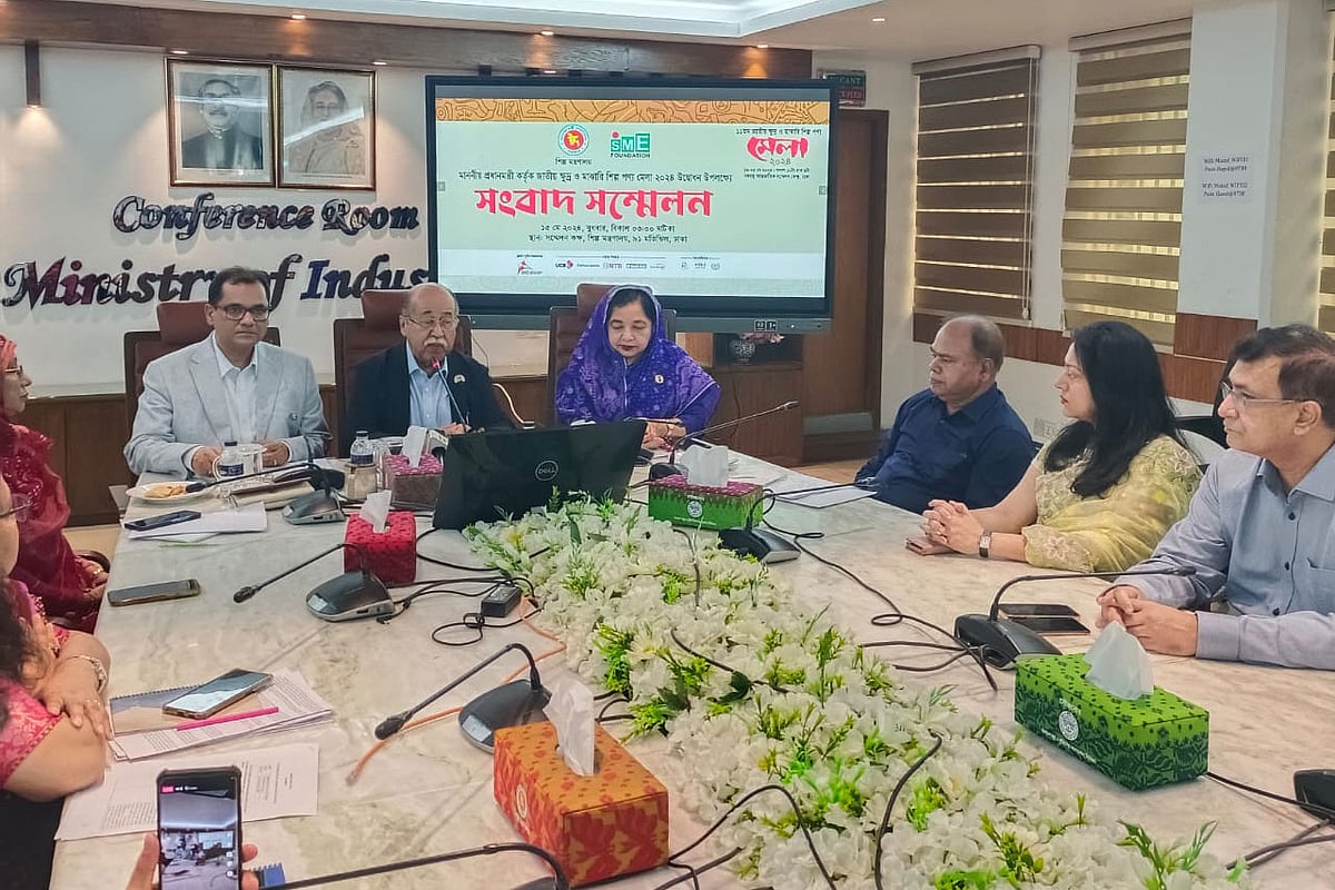 আজ বুধবার রাজধানীর মতিঝিলে শিল্প মন্ত্রণালয়ে এ সংবাদ সম্মেলন অনুষ্ঠিত হয়। এ সময় উপস্থিত ছিলেন শিল্পসচিব জাকিয়া সুলতানা, এসএমই ফাউন্ডেশনের চেয়ারপারসন মো. মাসুদুর রহমান, ব্যবস্থাপনা পরিচালক (অতিরিক্ত দায়িত্ব) সালাহউদ্দিন মাহমুদ প্রমুখ।