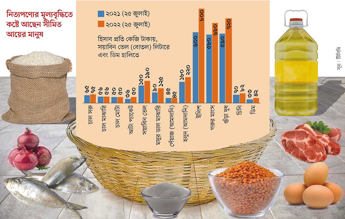 চাল, ডাল, ভোজ্যতেলসহ সব নিত্যপণ্য এবং খাতা–কলমের দাম, বাসভাড়া, বাসাভাড়া—সবকিছুই বেড়েছে।