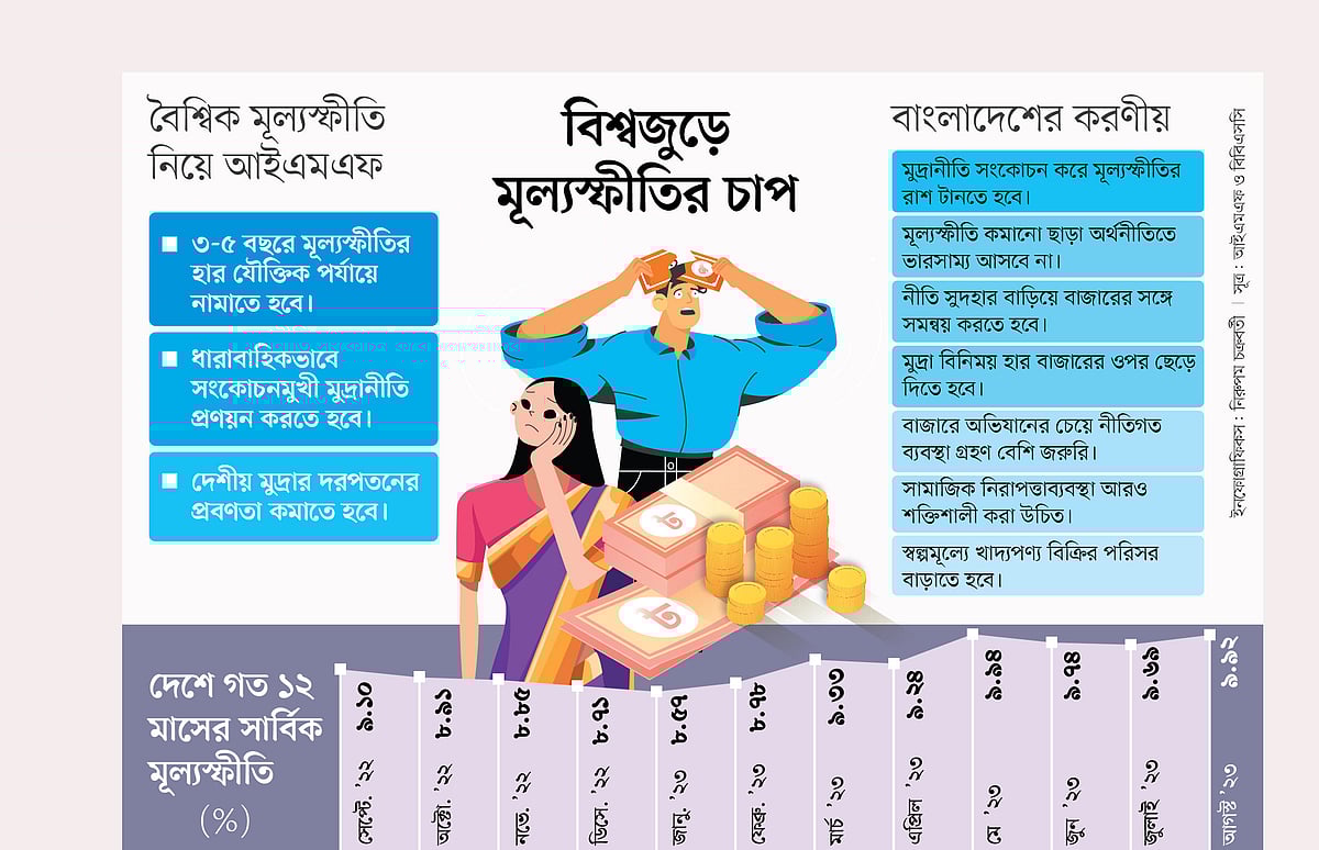 আইএমএফের কার্যপত্রে আরও বলা হয়েছে, মূল্যস্ফীতির বিরুদ্ধে চলমান লড়াই দীর্ঘস্থায়ী হবে। এই প্রক্রিয়ায় সময়ের আগেই মুদ্রানীতির রাশ ছেড়ে দেওয়া হলে মূল্যস্ফীতির হারও উল্টো বাড়বে।