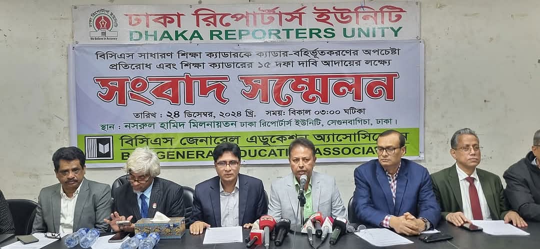 গতকাল মঙ্গলবার রাজধানীর ঢাকা রিপোর্টাস ইউনিটিতে আয়োজিত সংবাদ সম্মেলনে বিসিএস জেনারেল এডুকেশন অ্যাসোসিয়েশনের নেতারা এ কথা বলেন।