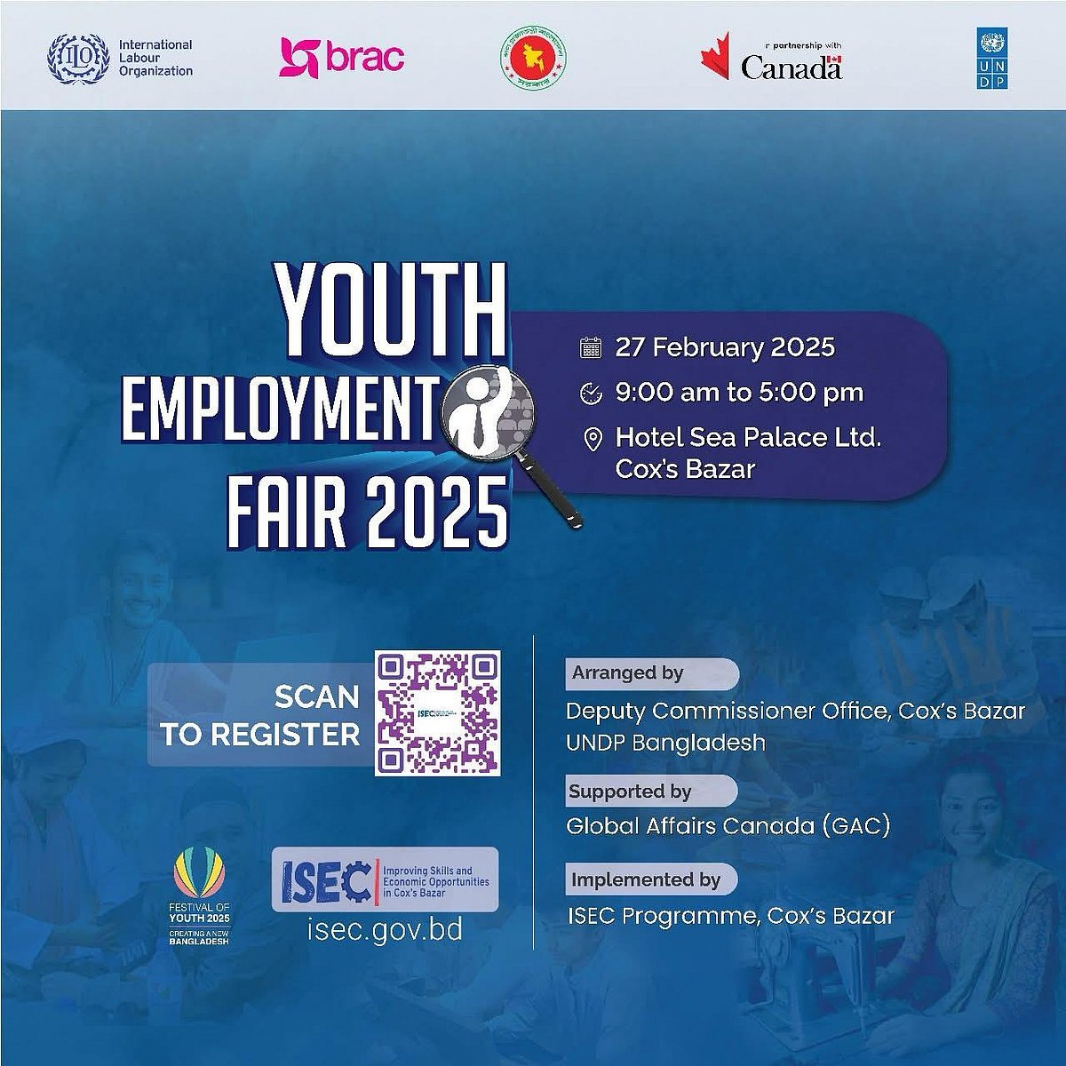 ইউএনডিপি বাংলাদেশের রেসিডেন্ট রিপ্রেজেন্টেটিভ স্টেফান লিলার বলেছেন, ‘যুব কর্মসংস্থানে বিনিয়োগ করা মানে বাংলাদেশের ভবিষ্যতে বিনিয়োগ করা। তারা বাংলাদেশের ভবিষ্যতের চালিকা শক্তি। ‘ইউথ এমপ্লয়মেন্ট ফেয়ার ২০২৫’ আমাদের সম্মিলিত প্রতিশ্রুতি প্রতিফলিত করে, যা প্রতিভাবান যুবকদের অর্থপূর্ণ চাকরির সুযোগের সঙ্গে যুক্ত করতে। গ্লোবাল অ্যাফেয়ার্স কানাডা, আইএলও এবং ব্র্যাকের সঙ্গে অংশীদারিত্ব, আমরা তরুণ চাকরি প্রার্থীদের প্রয়োজনীয় দক্ষতা এবং নেটওয়ার্ক প্রদান করার জন্য কাজ করছি, যাতে তারা একটি পরিবর্তনশীল চাকরির বাজারে সফল হতে পারে এবং সকলের জন্য একটি আরো অন্তর্ভুক্তিমূলক এবং সমৃদ্ধ অর্থনীতি তৈরি করা যায়।