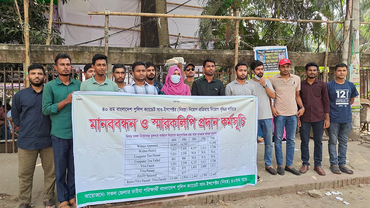 মানববন্ধনে অংশ নেওয়া নাম প্রকাশ না করার শর্তে একজন প্রার্থী বলেন, ‘নতুন করে এসআই নিয়োগের ৪১তম বিজ্ঞপ্তি যখন আসবে, তখন আমাদের অনেকের আবেদন করার বয়স থাকবে না। নতুনভাবে পরীক্ষা নেওয়াও সরকারের জন্য ব্যয়সাপেক্ষ। তাই আমরা যাঁরা ভাইভা দিয়েছি, তাঁদের মধ্য থেকে প্যানেল করে নিয়োগ দিলে সবার জন্য মঙ্গলজনক হবে।’