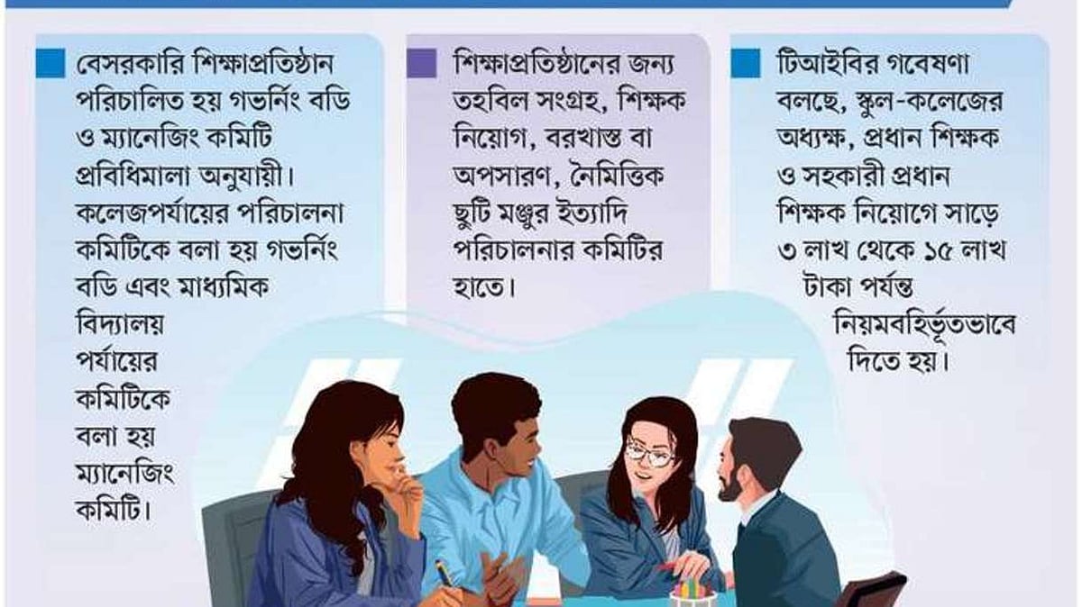 হয়েছে, এসব নিয়োগে সাড়ে ৩ লাখ থেকে ১৫ লাখ টাকা দিতে হয় নিয়মবহির্ভূতভাবে। এই টাকা দিতে হয় স্থানীয় রাজনৈতিক নেতা ও পরিচালনা কমিটিকে।