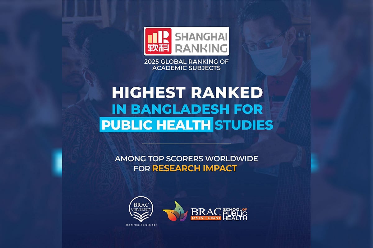 সাংহাই র্যাঙ্কিংয়ের ‘গ্লোবাল র্যাঙ্কিং অব একাডেমিক সাবজেক্টস ২০২৫’-এর পাবলিক হেলথ শিক্ষায় বাংলাদেশের সেরা বিশ্ববিদ্যালয়ের স্বীকৃতি লাভ করেছে ব্র্যাক ইউনিভার্সিটি। সম্প্রতি বিশ্বের বিভিন্ন বিশ্ববিদ্যালয়ের মোট ৫৭টি বিষয়কে এই র্যাঙ্কিংয়ে মূল্যায়ন করা হয়েছে। এসব বিষয়ের মধ্যে রয়েছে ন্যাচারাল সায়েন্স, লাইফ সায়েন্স, চিকিৎসাবিজ্ঞান, সামাজিক বিজ্ঞান ও প্রকৌশল শিক্ষা।