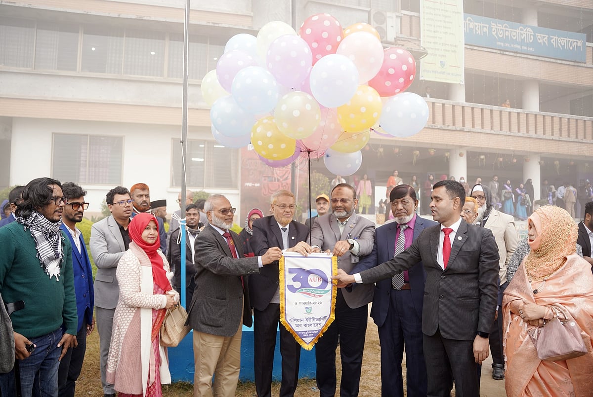 এশিয়ান ইউনিভার্সিটি অব বাংলাদেশ (এইউবি) ৩০তম প্রতিষ্ঠাবার্ষিকীতে মাসব্যাপী কর্মসূচির উদ্বোধন করেছে। উদ্বোধন করেন ঢাকা বিশ্ববিদ্যালয়ের উপাচার্য অধ্যাপক নিয়াজ আহমেদ খান। এ সময় উপস্থিত ছিলেন বিশ্ববিদ্যালয়ের প্রতিষ্ঠাতা উপাচার্য ও বোর্ড ট্রাস্টিজের চেয়ারম্যান অধ্যাপক আবুল হাসান মুহাম্মদ সাদেক এবং উপাচার্য ইমেরিটাস অধ্যাপক শাহজাহান খান।