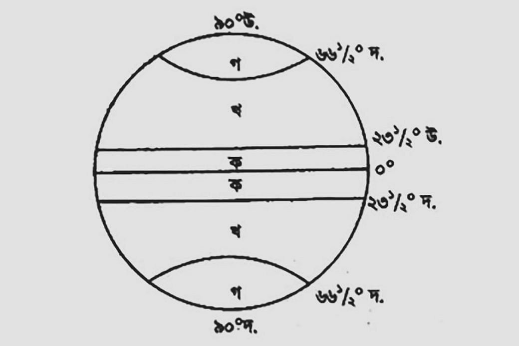 গ. চিত্রে ‘খ’ চিহ্নিত অঞ্চলগুলো হলো উত্তর ও দক্ষিণ নাতিশীতোষ্ণমণ্ডল। এ অঞ্চলের উষ্ণতা দুই ক্রান্তীয় অঞ্চলের উষ্ণতা অপেক্ষা কম বলে এদের জলবায়ু নাতিশীতোষ্ণ।