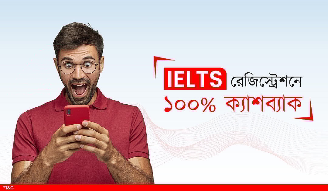 ২৯ সেপ্টেম্বর ২০১৯ থেকে ২৯ জুলাই ২০২১ সালের মধ্যে আইইএলটিএস পরীক্ষায় অংশগ্রহণকারী যেকোনো শিক্ষার্থী শতভাগ আইইএলটিএস রেজিস্ট্রেশন ফি ক্যাশব্যাক পাওয়ার জন্য প্রাথমিকভাবে এবং নির্ভুল তথ্য ও শর্ত পূরণে চূড়ান্ত যোগ্য বলে বিবেচিত হবেন।