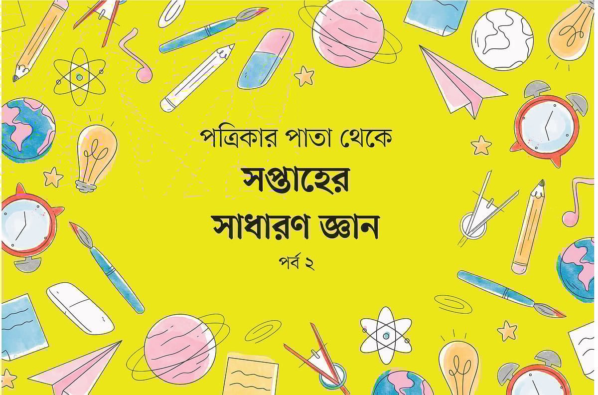 বিভিন্ন বিশ্ববিদ্যালয়ে ভর্তি, বিসিএস কিংবা চাকরির ক্ষেত্রে আমাদের সাধারণ জ্ঞানের পরীক্ষা দিতে হয়। গত ৭ দিনের পত্রিকায় ছাপা হওয়া তথ্য থেকে তৈরি হয়েছে এই সাধারণ জ্ঞানের কুইজ। নিছক আনন্দের জন্যও কুইজে অংশ নিতে পারেন। উত্তর দেওয়া থাকল লেখার শেষে।