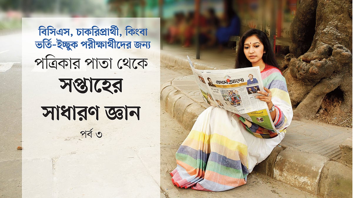 বিভিন্ন বিশ্ববিদ্যালয়ে ভর্তি, বিসিএস কিংবা চাকরির ক্ষেত্রে আমাদের সাধারণ জ্ঞানের পরীক্ষা দিতে হয়। গত ৭ দিনের পত্রিকায় ছাপা হওয়া তথ্য থেকে তৈরি হয়েছে এই সাধারণ জ্ঞানের কুইজ। নিছক আনন্দের জন্যও কুইজে অংশ নিতে পারেন। উত্তর দেওয়া থাকল লেখার শেষে।