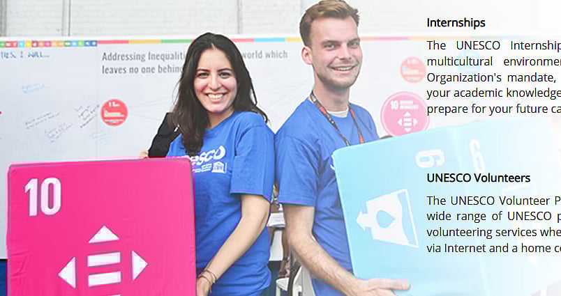 জাতিসংঘ শিক্ষা, বিজ্ঞান ও সংস্কৃতি সংস্থা (ইউনেসকো) স্নাতকোত্তর অথবা পিএইচডি ডিগ্রিধারীদের সুযোগ দেয় ইন্টার্নশিপের। এক থেকে ছয় মাস মেয়াদে ইন্টার্নশিপের এ সুযোগ দিচ্ছে ইউনেসকো। আগ্রহীরা আবেদন করতে পারবেন অনলাইনে।