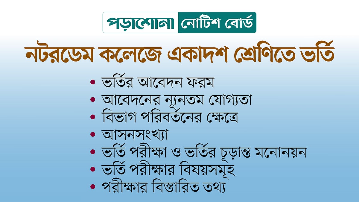 ∎ নটর ডেম কলেজে ২০২২-২০২৩ শিক্ষাবর্ষে একাদশ শ্রেণিতে ভর্তিপ্রক্রিয়া শুরু হয়েছে।