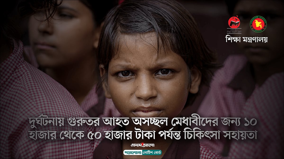 দুর্ঘটনায় গুরুতর আহত চিকিৎসাধীন অসচ্ছল ও মেধাবী শিক্ষার্থীদের এককালীন ১০ হাজার থেকে ৫০ হাজার টাকা পর্যন্ত আর্থিক অনুদান দেওয়া হবে। প্রধানমন্ত্রীর শিক্ষা সহায়তা ট্রাস্ট দেবে এই অনুদান। শুধু ষষ্ঠ থেকে স্নাতক ও সমমান শ্রেণিতে অধ্যয়নরত শিক্ষার্থীরাই এই অনুদানের জন্য আবেদন করতে পারবেন।