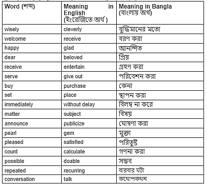 তোমাদের পাঠ্যবইয়ের শেষে কিছু শব্দের অর্থ দেওয়া আছে। সেগুলো ভালো করে শিখবে। সেগুলো ছাড়া আরও যেসব দরকারি শব্দ রয়েছে, সেগুলোর অর্থ তোমাদের জন্য দেওয়া হলো: