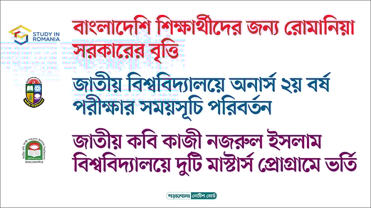∎ রোমানিয়ার বিভিন্ন বিশ্ববিদ্যালয়ে ২০২৩–২৪ শিক্ষাবর্ষে স্নাতক, স্নাতকোত্তর ও পিএইচডি পর্যায়ে আবেদন গ্রহণ করা হচ্ছে।