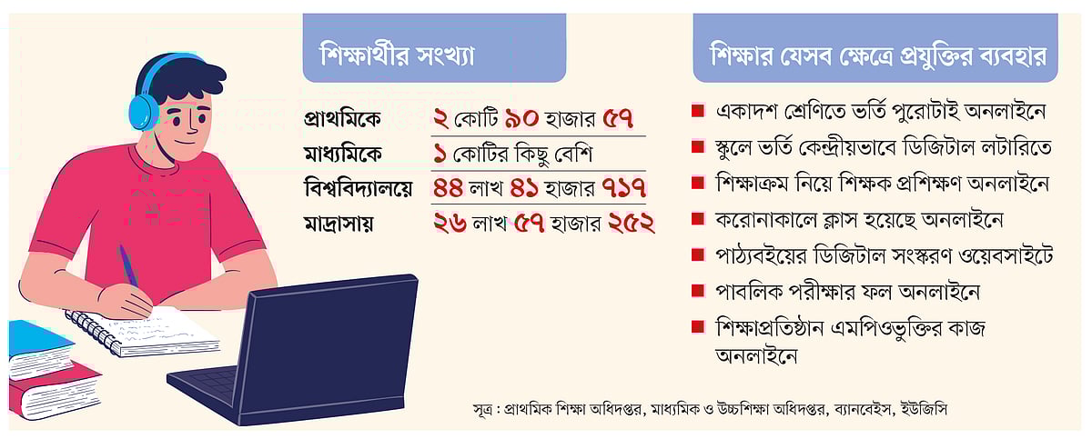 ভর্তি, ক্লাসসহ শিক্ষার বিভিন্ন ক্ষেত্রে প্রযুক্তির ব্যবহার বাড়ছে। প্রযুক্তির সুবিধাগুলো সবার কাছে সমানভাবে না পৌঁছানোই বড় চ্যালেঞ্জ।