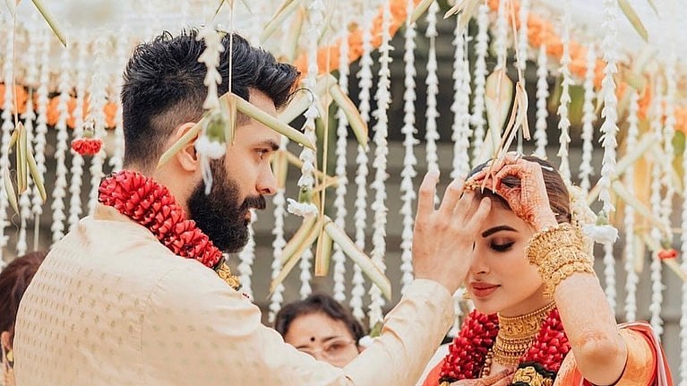 মৌনির পোস্ট করা এক ছবিতে দেখা যাচ্ছে, সুরজ তাঁর সিঁথিতে সিঁদুর এঁকে দিচ্ছেন। আর একটি ছবিতে দেখা যাচ্ছে, মৌনির গলায় মঙ্গলসূত্র পরিয়ে দিচ্ছেন সুরজ। একে অপরের সঙ্গে মালাবদলের মুহূর্তটিও ধরা পড়েছে মৌনির এই পোস্টে। তাঁর পোস্ট করা প্রতিটি ছবিতেই জমছে অভিনন্দন বার্তা।