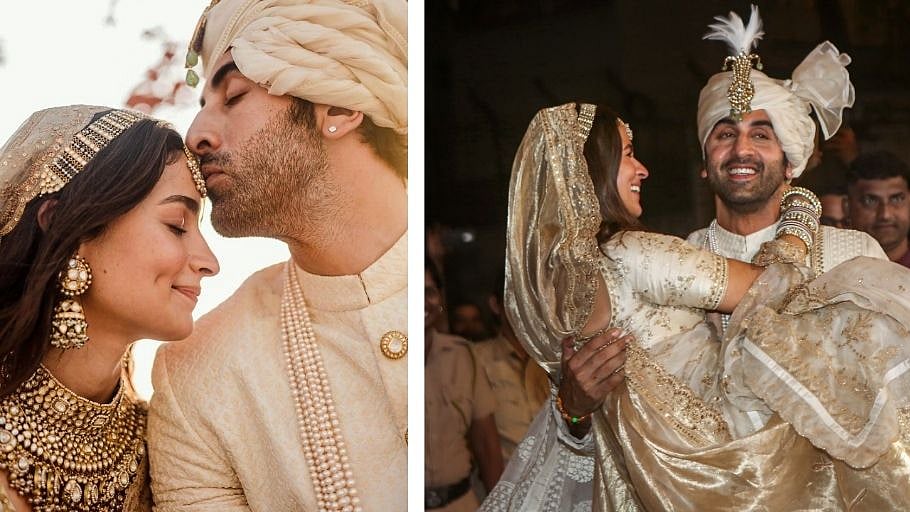 আর সব্যসাচী মুখোপাধ্যায়ের ডিজাইন করা অফ হোয়াইট শাড়িতে কনেবেশে আলিয়া হয়ে উঠেছিলেন কোনো স্বপ্নসুন্দরী। চার পুরোহিত তাঁদের বিয়ের কাজ সম্পন্ন করেছিলেন। ঋষি কাপুর ও পিতৃপুরুষদের পূজা করে এই জুটির বিয়ের শুভারম্ভ, এরপর গণেশ পূজা হয়েছিল।