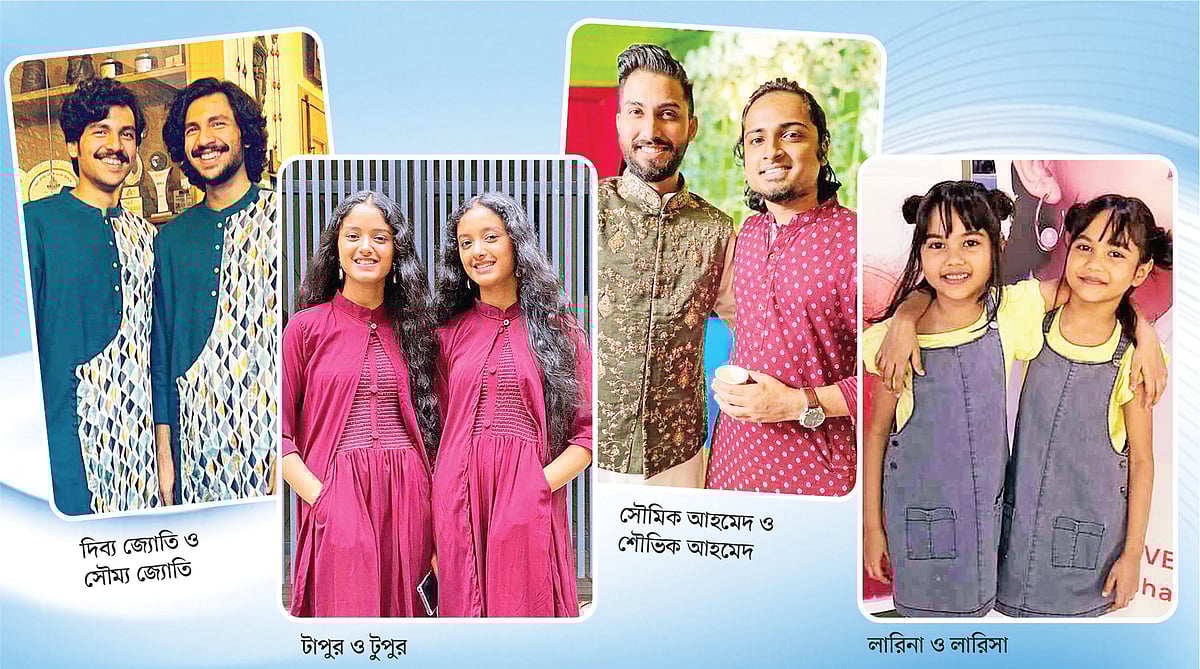 দুজনেই টিভি নাটকের পরিচিত মুখ, বেশির ভাগ সময়ই তাঁরা শুটিংয়ে ব্যস্ত থাকেন। লাইট ক্যামেরাকে কেন্দ্র করেই গড়েছেন ক্যারিয়ার। কিন্তু তাঁদের যমজ সন্তান ক্যামেরা দেখলেই মুখ লুকান। তবে বেড়ে ওঠার সঙ্গে সঙ্গে ক্যামেরার প্রতি ভালোবাসা জমে; বাবা-মায়ের হাত ধরে তাঁরাও নাম লেখান অভিনয়ে। তাঁরা অভিনেতা শাহনাজ খুশি ও নাট্যকার বৃন্দাবন দাস দম্পতির সন্তান দিব্য জ্যোতি ও সৌম্য জ্যোতি।