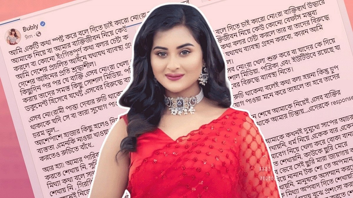বুবলী ওই ফেসবুক পোস্টে বলেছেন, ‘কিছুদিন পরপর যে ব্যক্তি এসব নোংরা খেলা শুরু করে বা যাদের দিয়ে করায়, তাদের সমস্ত কিছু সোশ্যাল মিডিয়া, পত্রিকা এবং ইউটিউবে রয়েছে, যা ডকুমেন্ট হিসেবে যথেষ্ট এসবের বিরুদ্ধে ব্যবস্থা নিতে। এসব নোংরামি পাত্তা দেওয়ার রুচি থাকে না বলেই এসব নিয়ে আমার কথা বলা হয় না। কিন্তু চুপ থাকাকে যদি সে বা তারা সুযোগ পাওয়া মনে করে, তাহলে তা হবে তাদের চরম ভুল। আশপাশে হাজার কিছু হলেও দিন শেষে আমাকে নিয়েই এসব ব্যক্তির ব্যস্ততা, এমনকি নাওয়া–খাওয়া—সব থাকে আমার চিন্তায়। এদের রেসপন্স করতেও রুচিতে বাঁধে।’