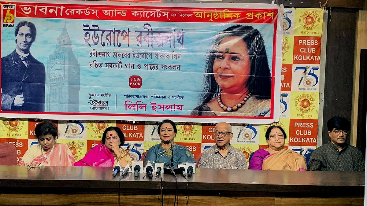 রবীন্দ্রনাথ ঠাকুরের ইউরোপ থাকাকালে তাঁর লেখা সব গান আর পাঠের সংকলন নিয়ে বের হয়েছে তিনটি অ্যালবাম। গতকাল বিকেলে কলকাতা প্রেসক্লাবে এই তিন অ্যালবামের প্রকাশনা অনুষ্ঠিত হয়। এসব অ্যালবামে গান, পাঠের পরিকল্পনা, গ্রন্থনা, পরিচালনা করেছেন বাংলাদেশের রবীন্দ্রসংগীতশিল্পী লিলি ইসলাম। তিনটি অ্যালবামে কবিগুরুর ৩০টি গান রয়েছে।