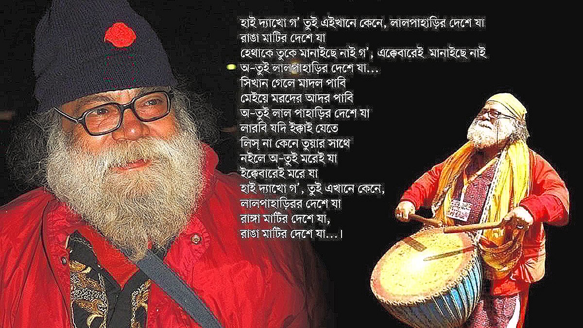 জানালাম, তাঁর লেখা লাল পাহাড়ির দ্যাশে যা’ গানটি আমাদের দেশেও খুব জনপ্রিয়। হেসে নিজেই জানালেন গানের ইতিহাস, ‘জানেন তো এই এটা মূলত কবিতা। একটা গাছের চারা নিয়ে লেখা। কবিতাখানার জন্ম হয়েছিল শ্রীরামপুরে।’ ৫০ বছর আগে লেখা কবিতা, ১৯৭২ সালে। অরুণ কুমার বলেন যান, ‘স্টেশনের পাশ দিয়ে যাচ্ছিলাম। হঠাৎই মহুয়া ফুলের গন্ধ। দেখলাম ফুলভর্তি একটা মহুয়াগাছ। দৃশ্যটা আমাকে কেন জানি অবাক করেছে। মনে হলো, আচ্ছা এ গাছটি এখানে কেন? এত জঙ্গলে থাকার কথা। এটা হবে জঙ্গলের রানি। এখানে, এ রেলস্টেশনে তো একে মানাচ্ছে না। জঙ্গলমহলেই তাকে মানায়। আর সেখানে বসেই লিখে ফেললাম এ কবিতা। ‘হাই দ্যাখ গো/তুই ইখানে কেনে/ও তুই লাল পাহাড়ির দ্যাশে যা/রাঙামাটির দ্যাশে যা হেথাকে তুকে মানাইছে নাইরে/ইক্কেবারে মানাইছে নাইরে...।