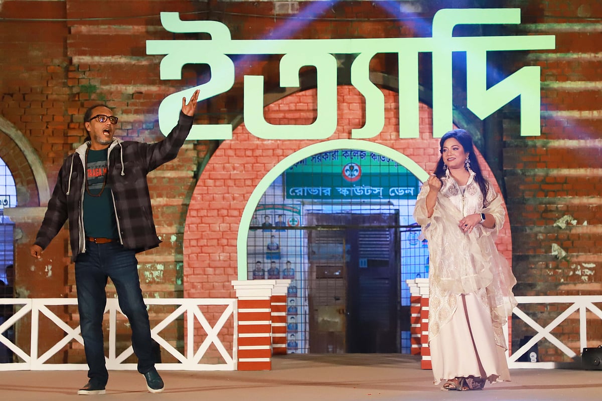 এবারের অনুষ্ঠানে আধুনিক ও ফোকের ফিউশনে একটি দ্বৈত সংগীত গেয়েছেন এ সময়ের জনপ্রিয় কণ্ঠশিল্পী পান্থ কানাই ও ডলি সায়ন্তনী।