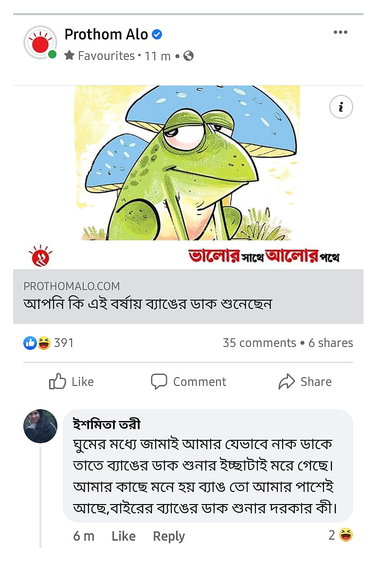 দেশে যে কত রসিক মানুষ আছেন, তা বোঝা যায় প্রথম আলোর ফেসবুক পেজের বিভিন্ন পোস্টের নিচে পাঠকের মন্তব্য দেখলে। কিছু মন্তব্য পড়লে হাসতে হাসতে পেটে খিল লেগে যাওয়ার দশা হয়। প্রিয় পাঠকের সরস এবং তীক্ষ্ণ মন্তব্যগুলো নিয়েই একটু থামুনের এই বিভাগ—পাঠক বলেছেন। এখানে বাছাই করা দারুণ মন্তব্যগুলো প্রকাশ করা হয়। অতএব চোখ রাখুন নিয়মিত...