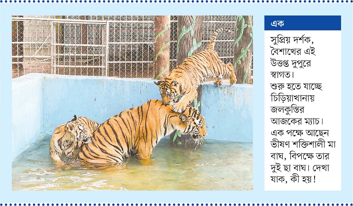 <p>গরম থেকে একটু স্বস্তি পেতে খাঁচার ভেতরের চৌবাচ্চায় নেমেছিল মা বাঘ জয়া ও দুই শাবক। ১৭ এপ্রিল চট্টগ্রাম চিড়িয়াখানা থেকে ওদের ছবি তুলেছেন <strong>সৌরভ দাশ</strong>।</p>