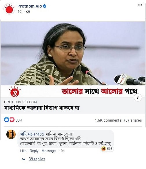 দেশে যে কত রসিক মানুষ আছেন, তা বোঝা যায় প্রথম আলোর ফেসবুক পেজের বিভিন্ন পোস্টের নিচে পাঠকের মন্তব্য দেখলে। কিছু মন্তব্য পড়লে হাসতে হাসতে পেটে খিল লেগে যাওয়ার দশা হয়। প্রিয় পাঠকের সরস এবং তীক্ষ্ণ মন্তব্যগুলো নিয়েই একটু থামুনে শুরু হলো নতুন বিভাগ—পাঠক বলেছেন। এখানে বাছাই করা দারুণ মন্তব্যগুলো প্রকাশ করা হবে। অতএব চোখ রাখুন নিয়মিত...