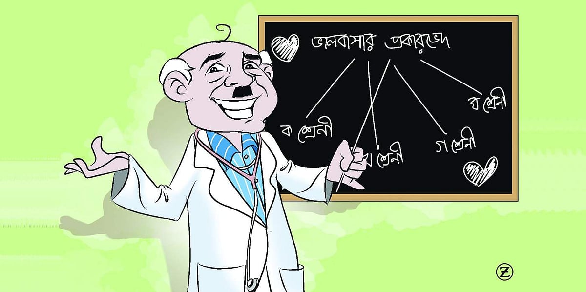 ডাক্তার খবিরুদ্দিন প্রেমকে শুধু রোগ হিসেবেই দেখেছেন, তা-ই না। প্রেমের দৃষ্টিকোণ থেকে সমগ্র মানবজাতিকে চার শ্রেণীতে ভাগ করেছেন। এবং এই চার শ্রেণীর জন্য পৃথক পৃথক চিকিৎসার বিধানও দিয়েছেন। শ্রেণী ও বিধান পুরুষের জন্য প্রযোজ্য।
