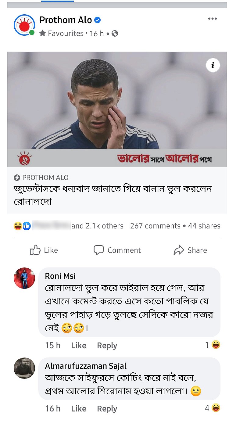 দেশে যে কত রসিক মানুষ আছেন, তা বোঝা যায় প্রথম আলোর ফেসবুক পেজের বিভিন্ন পোস্টের নিচে পাঠকের মন্তব্য দেখলে। কিছু মন্তব্য পড়লে হাসতে হাসতে পেটে খিল লেগে যাওয়ার দশা হয়। প্রিয় পাঠকের সরস এবং তীক্ষ্ণ মন্তব্যগুলো নিয়েই একটু থামুনের এই বিভাগ—পাঠক বলেছেন। এখানে বাছাই করা দারুণ মন্তব্যগুলো প্রকাশ করা হয়। অতএব চোখ রাখুন নিয়মিত...