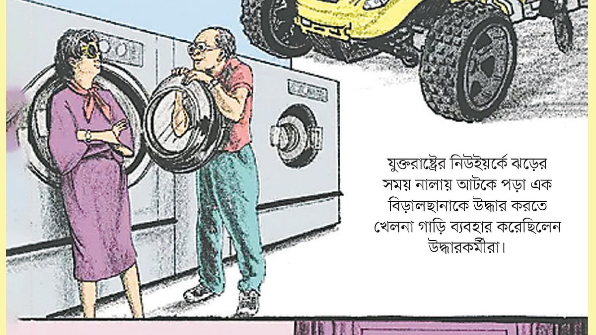বিড়ালছানাকে উদ্ধার করতে খেলনা গাড়ির ব্যবহার