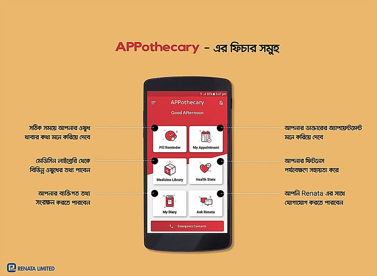 সুস্থ থাকতে কে না চায়। শরীরে বিভিন্ন রোগবালাই বাসা তো বাঁধেই। আর অসুস্থ হলে চিকিৎসকের ব্যবস্থাপত্র অনুযায়ী আমাদের ওষুধ খেতে হয়। নানা কাজের ব্যস্ততায় অনেক সময় ওষুধ খেতে ভুলেও যাই। ওষুধ খেতে ভুলে যাওয়াটা খুবই সাধারণ ব্যাপার। কিন্তু এতে শরীরের যে ক্ষতি হতে পারে, সেটা সাধারণ ব্যাপার বলা যায় না। তাই এ সমস্যার সমাধান নিয়ে এসেছে ওষুধ কোম্পানি রেনাটা লিমিটেড। ‘APPothecary’ নামের একটি মোবাইল অ্যাপ্লিকেশন আপনাকে সময়মতো ওষুধ খেতে মনে করিয়ে দেবে।