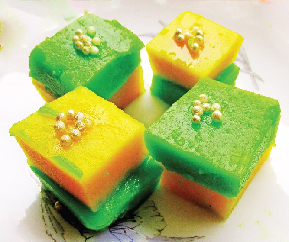 উপকরণ: সেদ্ধ কাঁঠালের বিচি বাটা ১ কাপ, কাজুবাদাম বাটা ১ কাপ, কর্নফ্লাওয়ার ২ টেবিল চামচ, ঘন দুধ ১ কাপ, কনডেন্সড মিল্ক ১ কাপ, মাওয়া আধা কাপ, চিনি ১ কাপ, ফুড কালার সামান্য, ঘি ২ টেবিল চামচ, লবণ স্বাদমতো, এলাচি দানা গুঁড়া সামান্য, কিশমিশ ১ টেবিল চামচ