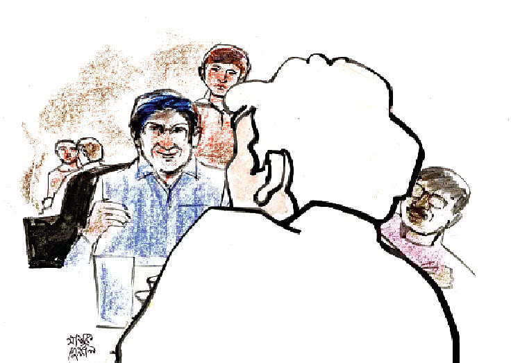আমি চিত্রকর ভদ্রলোকের পাশে গিয়ে বসলাম। িশঙারায় বাদাম দেওয়া একটি গর্হিত অপরাধ—এই শীর্ষক আলোচনায় যোগ দিলাম। হঠাৎ মনে হলো, জীবনের কঠিন সিদ্ধান্তগুলো আমরা সাময়িক আবেগের বশে নিয়ে থাকি। সেই আবেগ চলে যাওয়ার পর আমরা কঠিন সিদ্ধান্তের জন্য অনুতপ্ত হই, কিছুটা লজ্জাও পাই এবং দ্রুত ভুলে যাওয়ার চেষ্টা করি সিদ্ধান্তটি।
